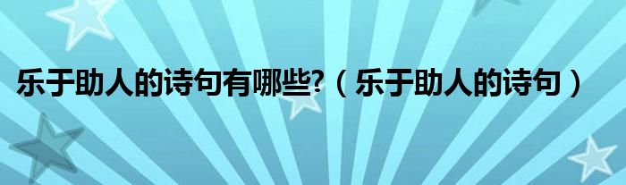 乐于助人的诗句有哪些?(乐于助人的诗句)