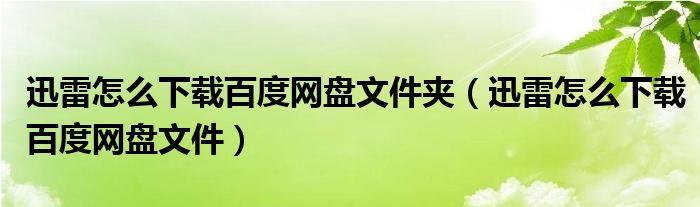 关于迅雷怎么下载百度网盘文件夹,迅雷怎么下载百度网盘文件这个很多人还不知道,今天菲菲来为大家解答以上的问题,现在让我们一起来看看吧!