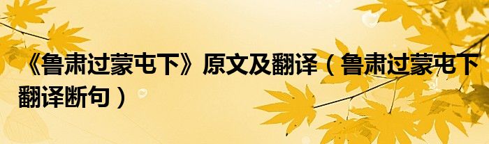 关于《鲁肃过蒙屯下》原文及翻译,鲁肃过蒙屯下翻译断句这个很多人还不知道,今天菲菲来为大家解答以上的问题,现在让我们一起来看看吧!