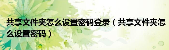 关于共享文件夹怎么设置密码登录,共享文件夹怎么设置密码这个很多人还不知道,今天菲菲来为大家解答以上的问题,现在让我们一起来看看吧!