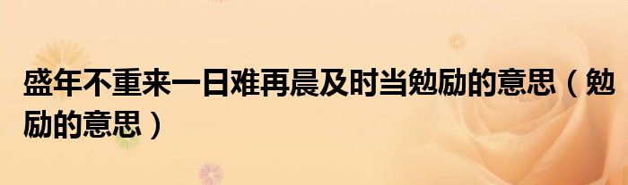 关于盛年不重来一日难再晨及时当勉励的意思,勉励的意思这个很多人还不知道,今天菲菲来为大家解答以上的问题,现在让我们一起来看看吧!
