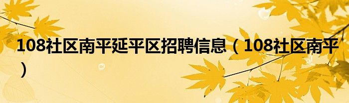 关于108社区南平延平区招聘信息,108社区南平这个很多人还不知道,今天菲菲来为大家解答以上的问题,现在让我们一起来看看吧!
