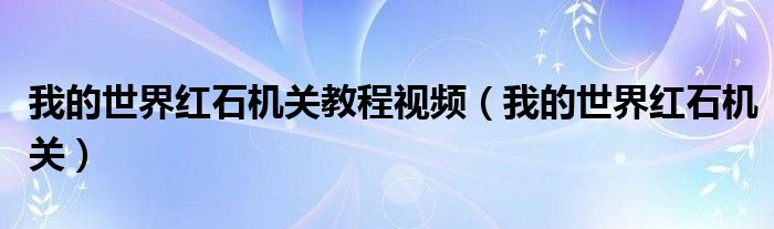 关于我的世界红石机关教程视频,我的世界红石机关这个很多人还不知道,今天菲菲来为大家解答以上的问题,现在让我们一起来看看吧!
