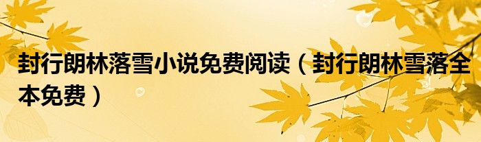 关于封行朗林落雪小说免费阅读,封行朗林雪落全本免费这个很多人还不知道,今天菲菲来为大家解答以上的问题,现在让我们一起来看看吧!