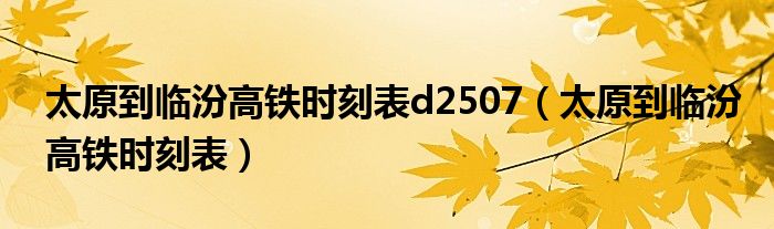 关于太原到临汾高铁时刻表d2507,太原到临汾高铁时刻表这个很多人还不知道,今天菲菲来为大家解答以上的问题,现在让我们一起来看看吧!