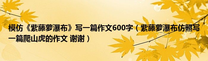关于模仿《紫藤萝瀑布》写一篇作文600字,紫藤萝瀑布仿照写一篇爬山虎的作文 谢谢这个很多人还不知道,今天菲菲来为大家解答以上的问题,现在让我们一起来看看吧!