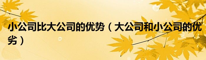 关于小公司比大公司的优势,大公司和小公司的优劣这个很多人还不知道,今天菲菲来为大家解答以上的问题,现在让我们一起来看看吧!