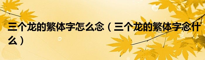 关于三个龙的繁体字怎么念,三个龙的繁体字念什么这个很多人还不知道,今天菲菲来为大家解答以上的问题,现在让我们一起来看看吧!