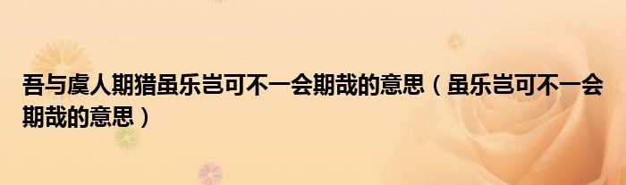 关于吾与虞人期猎虽乐岂可不一会期哉的意思,虽乐岂可不一会期哉的意思这个很多人还不知道,今天菲菲来为大家解答以上的问题,现在让我们一起来看看吧!