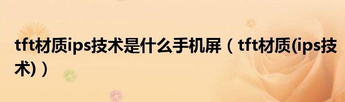 关于tft材质ips技术是什么手机屏,tft材质(ips技术)这个很多人还不知道,今天菲菲来为大家解答以上的问题,现在让我们一起来看看吧!