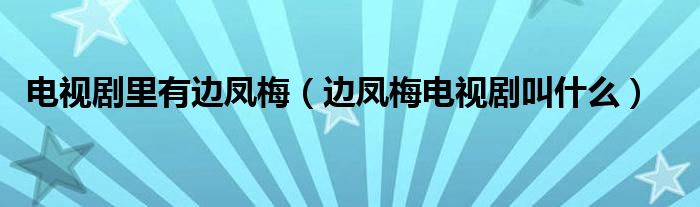 大家好,小晋来为大家解答以下问题,关于电视剧里有边凤梅,边凤梅电视剧叫什么很多人还不知道,今天让我们一起来看看吧!