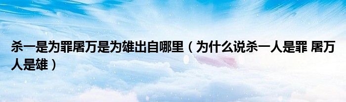 关于杀一是为罪屠万是为雄出自哪里,为什么说杀一人是罪 屠万人是雄这个很多人还不知道,今天菲菲来为大家解答以上的问题,现在让我们一起来看看吧!