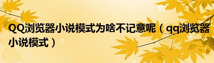 大家好,小晋来为大家解答以下问题,关于QQ浏览器小说模式为啥不记意呢,qq浏览器小说模式很多人还不知道,今天让我们一起来看看吧!