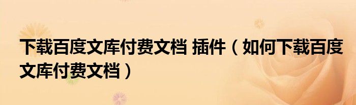 下载百度文库付费文档 插件(如何下载百度文库付费文档)