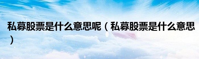 关于私募股票是什么意思呢,私募股票是什么意思这个很多人还不知道,今天菲菲来为大家解答以上的问题,现在让我们一起来看看吧!