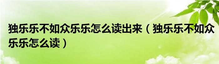 关于独乐乐不如众乐乐怎么读出来,独乐乐不如众乐乐怎么读这个很多人还不知道,今天菲菲来为大家解答以上的问题,现在让我们一起来看看吧!