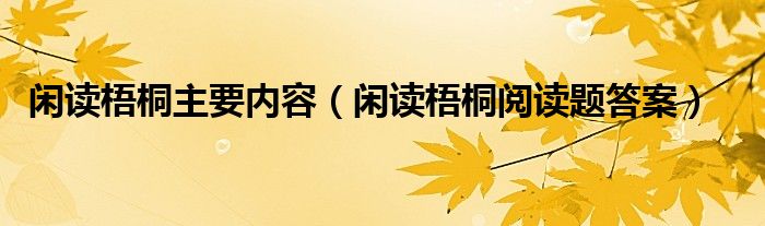 关于闲读梧桐主要内容,闲读梧桐阅读题答案这个很多人还不知道,今天菲菲来为大家解答以上的问题,现在让我们一起来看看吧!