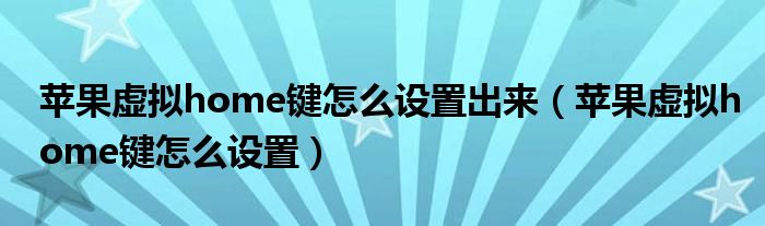 关于苹果虚拟home键怎么设置出来,苹果虚拟home键怎么设置这个很多人还不知道,今天菲菲来为大家解答以上的问题,现在让我们一起来看看吧!