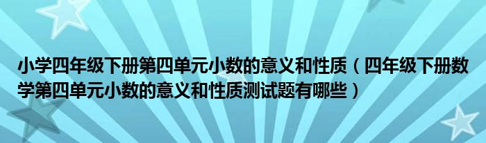 关于小学四年级下册第四单元小数的意义和性质,四年级下册数学第四单元小数的意义和性质测试题有哪些这个很多人还不知道,今天菲菲来为大家解答以上的问题,现在让我们一起来看看吧!