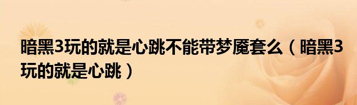 暗黑3玩的就是心跳不能带梦魇套么(暗黑3玩的就是心跳)