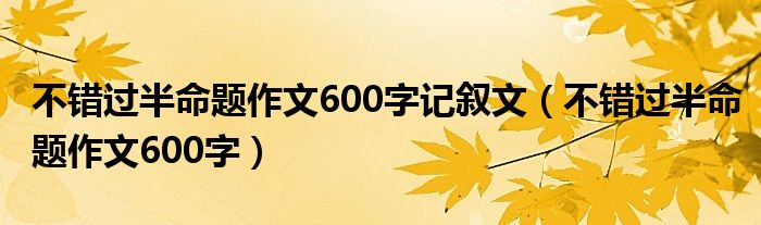 关于不错过半命题作文600字记叙文,不错过半命题作文600字这个很多人还不知道,今天菲菲来为大家解答以上的问题,现在让我们一起来看看吧!