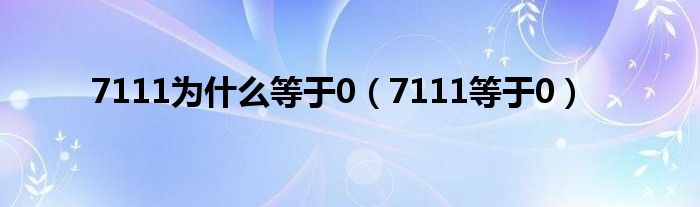 关于7111为什么等于0,7111等于0这个很多人还不知道,今天菲菲来为大家解答以上的问题,现在让我们一起来看看吧!