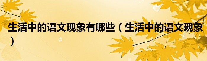 关于生活中的语文现象有哪些,生活中的语文现象这个很多人还不知道,今天菲菲来为大家解答以上的问题,现在让我们一起来看看吧!