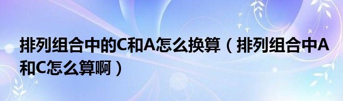 关于排列组合中的C和A怎么换算,排列组合中A和C怎么算啊这个很多人还不知道,今天菲菲来为大家解答以上的问题,现在让我们一起来看看吧!