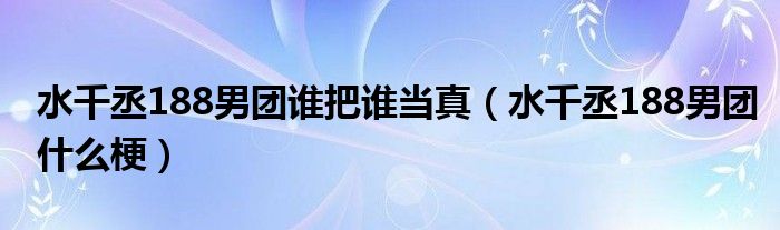 关于水千丞188男团谁把谁当真,水千丞188男团什么梗这个很多人还不知道,今天菲菲来为大家解答以上的问题,现在让我们一起来看看吧!