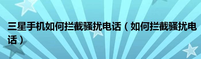 关于三星手机如何拦截骚扰电话,如何拦截骚扰电话这个很多人还不知道,今天菲菲来为大家解答以上的问题,现在让我们一起来看看吧!