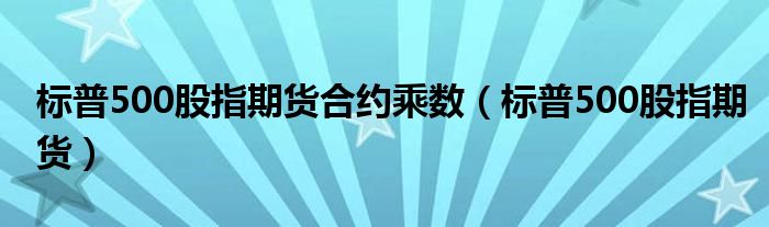 关于标普500股指期货合约乘数,标普500股指期货这个很多人还不知道,今天菲菲来为大家解答以上的问题,现在让我们一起来看看吧!