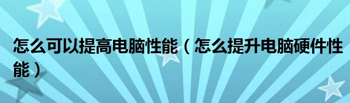 怎么可以提高电脑性能(怎么提升电脑硬件性能)