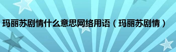 玛丽苏剧情什么意思网络用语(玛丽苏剧情)
