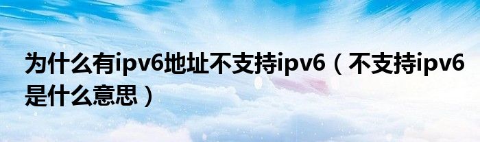 关于为什么有ipv6地址不支持ipv6,不支持ipv6是什么意思这个很多人还不知道,今天菲菲来为大家解答以上的问题,现在让我们一起来看看吧!