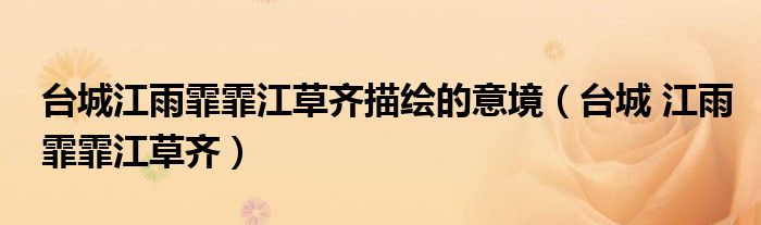 关于台城江雨霏霏江草齐描绘的意境,台城 江雨霏霏江草齐这个很多人还不知道,今天菲菲来为大家解答以上的问题,现在让我们一起来看看吧!