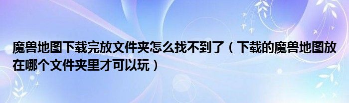 关于魔兽地图下载完放文件夹怎么找不到了,下载的魔兽地图放在哪个文件夹里才可以玩这个很多人还不知道,今天菲菲来为大家解答以上的问题,现在让我们一起来看看吧!