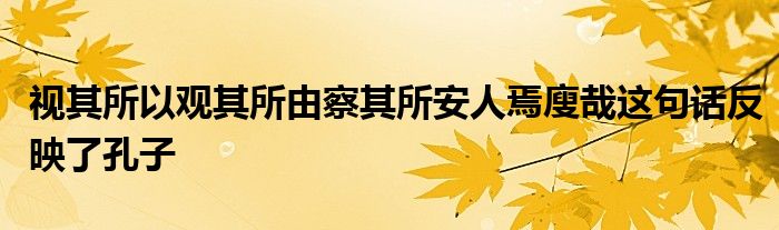 关于视其所以观其所由察其所安人焉廋哉这句话反映了孔子这个很多人还不知道,今天菲菲来为大家解答以上的问题,现在让我们一起来看看吧!