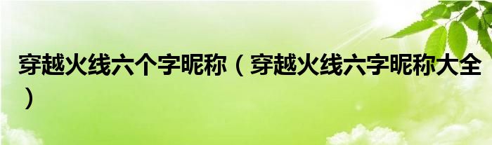 穿越火线六个字昵称(穿越火线六字昵称大全)