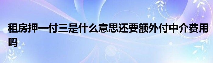 关于租房押一付三是什么意思还要额外付中介费用吗这个很多人还不知道,今天菲菲来为大家解答以上的问题,现在让我们一起来看看吧!