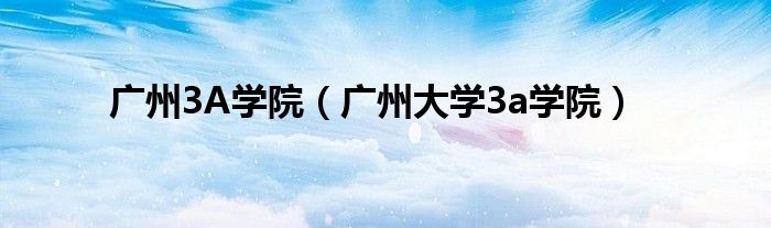 关于广州3A学院,广州大学3a学院这个很多人还不知道,今天菲菲来为大家解答以上的问题,现在让我们一起来看看吧!