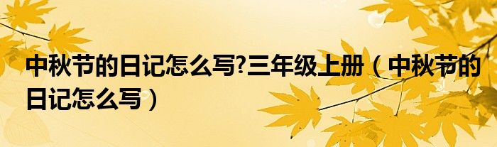 关于中秋节的日记怎么写?三年级上册,中秋节的日记怎么写这个很多人还不知道,今天菲菲来为大家解答以上的问题,现在让我们一起来看看吧!