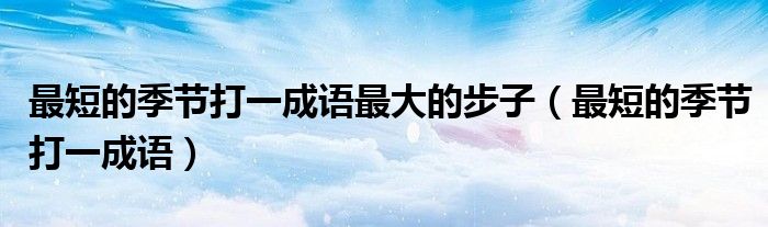 关于最短的季节打一成语最大的步子,最短的季节打一成语这个很多人还不知道,今天菲菲来为大家解答以上的问题,现在让我们一起来看看吧!