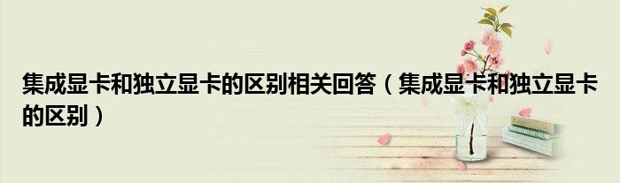 大家好,小晋来为大家解答以下问题,关于集成显卡和独立显卡的区别相关回答,集成显卡和独立显卡的区别很多人还不知道,今天让我们一起来看看吧!
