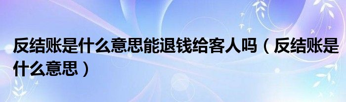 关于反结账是什么意思能退钱给客人吗,反结账是什么意思这个很多人还不知道,今天菲菲来为大家解答以上的问题,现在让我们一起来看看吧!