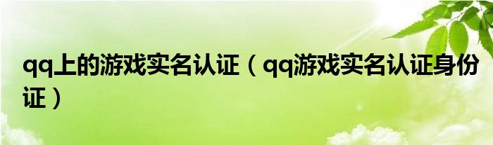关于qq上的游戏实名认证,qq游戏实名认证身份证这个很多人还不知道,今天菲菲来为大家解答以上的问题,现在让我们一起来看看吧!