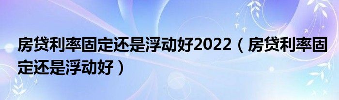 关于房贷利率固定还是浮动好2022,房贷利率固定还是浮动好这个很多人还不知道,今天菲菲来为大家解答以上的问题,现在让我们一起来看看吧!
