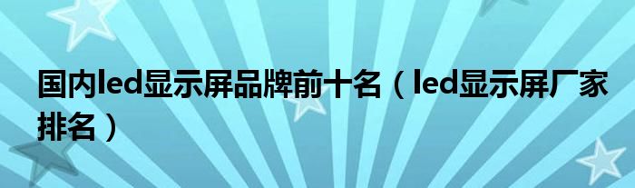 关于国内led显示屏品牌前十名,led显示屏厂家排名这个很多人还不知道,今天菲菲来为大家解答以上的问题,现在让我们一起来看看吧!