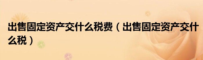 关于出售固定资产交什么税费,出售固定资产交什么税这个很多人还不知道,今天菲菲来为大家解答以上的问题,现在让我们一起来看看吧!