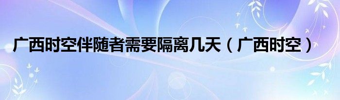 关于广西时空伴随者需要隔离几天,广西时空这个很多人还不知道,今天菲菲来为大家解答以上的问题,现在让我们一起来看看吧!