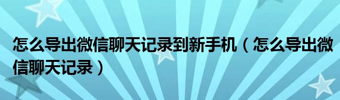 怎么导出微信聊天记录到新手机(怎么导出微信聊天记录)